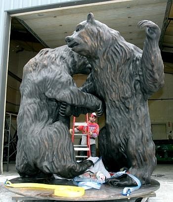 Bob Stayton's dancing bears sculpture left Kalispell Art Casting on Tuesday on the first leg of a journey to a palatial new home on Bigfork Bay.