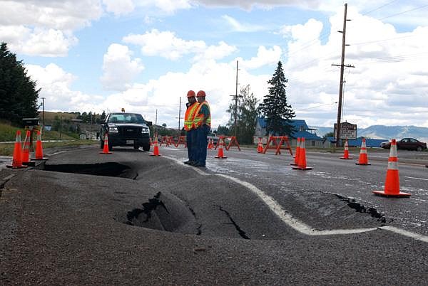 Montana Department of Transportation crews worked throughout the week to repair a 75-foot long sinkhole caused by a failed irrigation pipe just east of Delaney’s Landscape Center on Montana Highway 35.