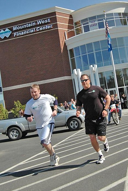 SANDPOINT —Two Mountain West Bank employees turned their friendly rivalry into a foot race across town last week that raised thousands of dollars for the American Cancer Society’s Relay for Life.