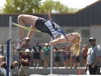 Right around the same time on the other end of the stadium, freshman Lexy Boschee won the high jump with a clear of 5-foot-6 to unseat three-time state champ Gwen Abbott of Butte.