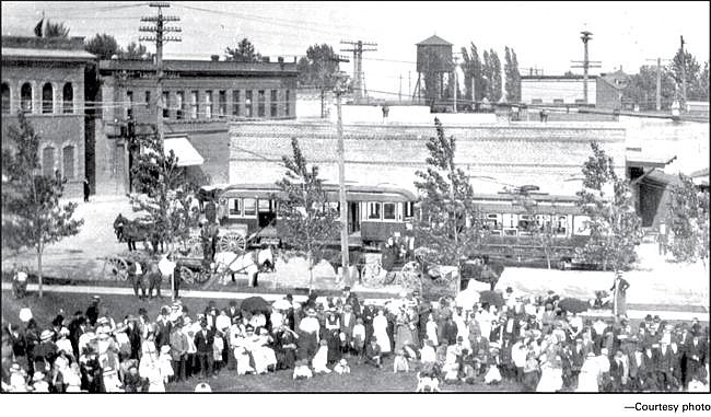 The local paper recorded the arrival of two streetcars on Sept. 4, 1909. The cars had side doors and were divided into three sections. The front and rear section would hold eight people while the center section would accommodate 18, making 34 the total capacity.
