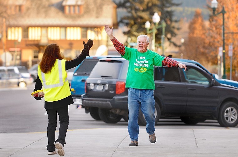 He leaves the house each morning at 8 a.m. sporting a bright green T-shirt that announces he’s the “Old Man Walking,” and walks through downtown and neighborhoods around the Whitefish Middle School. If Atkinson is out of town, he walks regardless of the location.