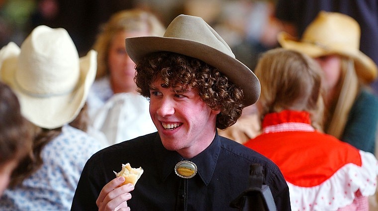 Glacier High School senior Brian Hoffman enjoys his sandwich and the company of his friends during lunch Thursday afternoon. Thursday was Cowboy Day at Glacier as part of the school's first-ever homecoming week. The homecoming parade is at 6 p.m. today followed by homecoming football against Great Falls at 7 p.m.