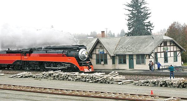 The historic Southern Pacific No. 4449 whizzed through a foggy Libby and stopped in Troy to service the locomotive, a requirement every 100-150 miles.