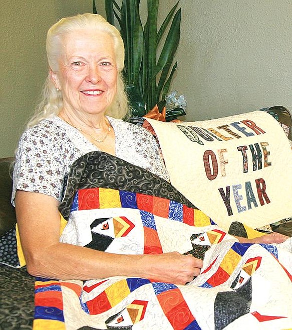 Because Edington gave away many of her quilts locally, she will be able to borrow them back to feature at her booth. Her latest creation is a quilt with puffins on it that she is finishing up to give to her son who lives in Alaska. It will also be at the Quilt Show.
