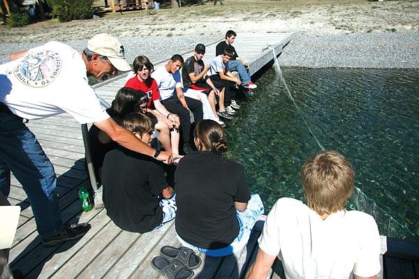 Using a slide-show presentation, Tribal Fisheries Biologist Barry Hanson explained to students how people need to honor the lake by not letting native fish, like bull and cutthroat trout, go extinct. Arrival of non-native species in Flathead Lake like lake trout and mysis shrimp have already led to the disappearance of kokanee salmon from the lake and forever changed the ecology of the lake, meaning that saving the native species still remaining is of utmost importance, according to Hanson. He said that despite contests like Mack Days that help catch more than 20,000 lake trout a year, native species continue to be threatened by these predacious fish.