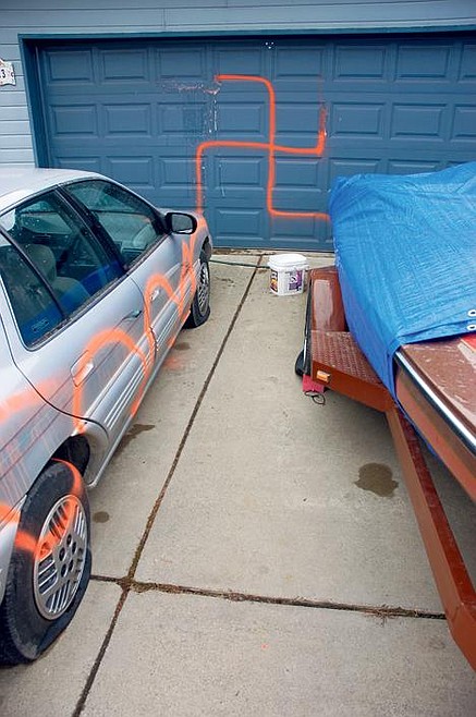SANDPOINT — A Sandpoint couple’s home was defaced with a swastika and tires on their vehicles were slashed late Thursday night or early Friday morning.