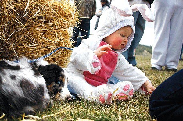 Participants did make it to the aptly named "money in the straw" game and an Easter bonnet hat contest. The winner, Kim Edwards, of Missoula, wore a hat shaped as a giant Easter egg. "Happy Easter" in foam letters rested on the brim of the hat.