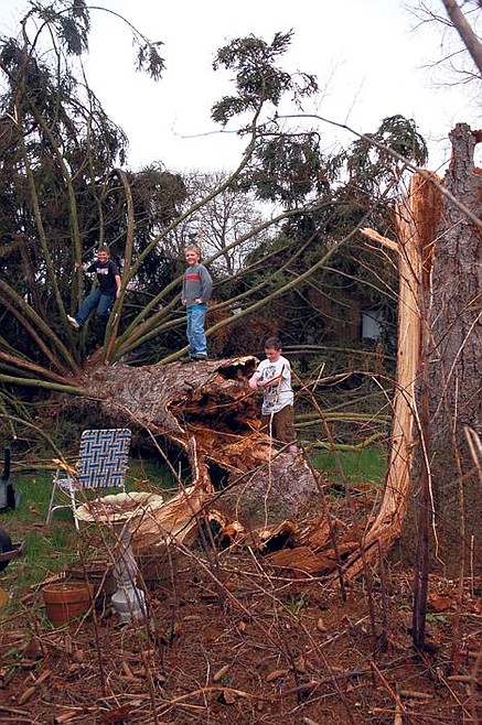 “It pays to go to church,” the neighbor, Gwen Knowles, said as she surveyed the downed tree.