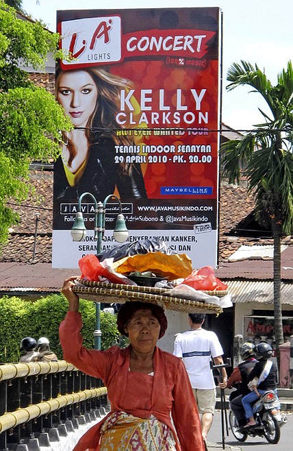 BOGOR, Indonesia - Just a few miles after passing a towering Marlboro Man ad, a second billboard off the highway promotes cigarettes with a new American face: Kelly Clarkson.