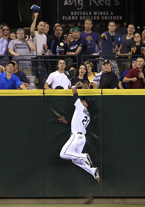 Seattle center fielder Franklin Gutierrez looked back at the padded wall once, drifted onto the track and then timed his leap perfectly to snare the ball in the webbing of his black glove just before he drifted into a gaggle of men standing at a railing and drinking in a beer garden.