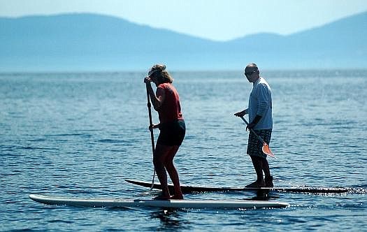 Two weeks ago Erick Gelbke, who co-owns SUP Montana with Jay Dobbins, brought his boards and paddles to Woods Bay to show how easy and fun paddleboarding is with a demo day he hosted. Although the weather wasn't too cooperative participants seemed to enjoy themselves.