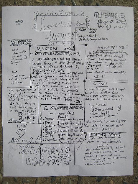 The kids on the mountain road south of Post Falls have started the Summerfield Road News, the perfect way of re-connecting neighbors and putting their entrepreneurship skills to work for a fun summer project.