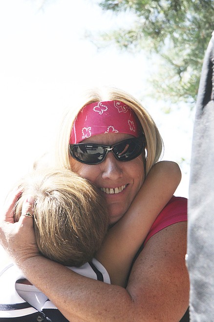 During this year’s rally in July, Hoyt led 50 cyclists past the girl’s home near Hauser Lake. They threw hundreds of beads as a sign of support into her yard where she was waiting for them with a welcome sign, hundreds of beads like prayers on a rosary, red, green, and blue.