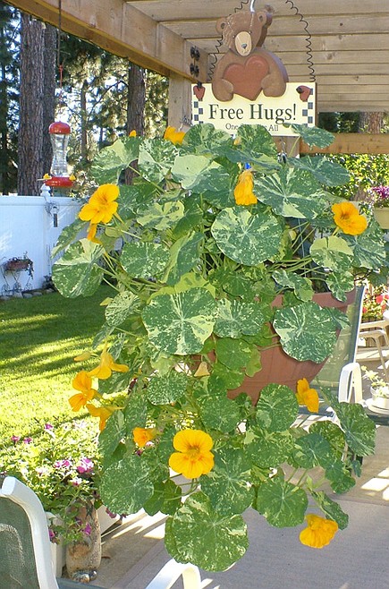 One of my favorite annuals is the nasturtium. These are easy to grow and do best if the seeds are planted directly where you want them to grow. Having large seeds, they're fun and a cinch to plant. Even kids can do it. These were one of the first New World plants to become popular in Europe as the early conquistadors brought them back to Spain. They were first grown as a salad crop and vegetable. All parts are edible. Fancy restaurants often feature them on their menus.