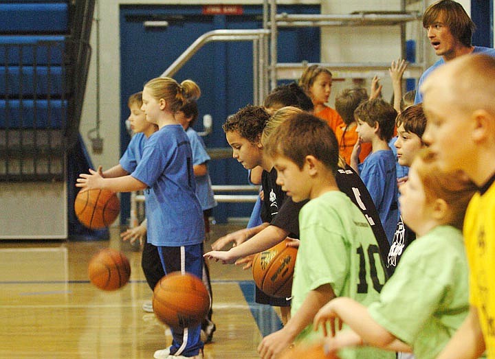 guiding the young athletes. Bigfork High School head girls