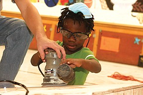 Closely supervised by the high school students, it was the first time many of the young boys had lined up an electric drill to a wobbly screw or felt the hum of a handheld sander against their palms.