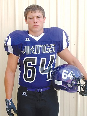 Joel Lews is a senior lineman for the Charlo High School football team. The Vikings advanced to the second round of the Class C 8-man football playoffs this fall.