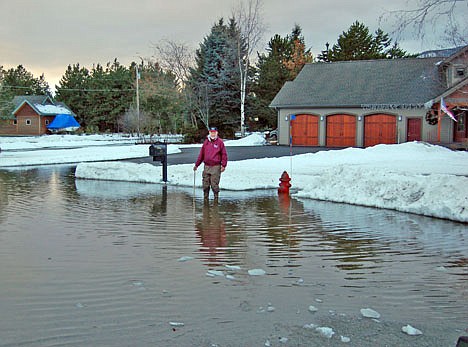 Kootenai resident Serve Wilson, who resides on Humbird Drive, is unable to remove his vehicles from his driveway after melting snow outside his house pooled into a puddle the size of a small pond. The result of a clogged culvert system, the unwelcome body of water reaches a depth of two feet in some areas.