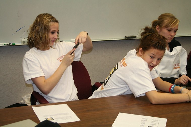 Moses Lake High School drill team members were the first to receive the T-shirts.