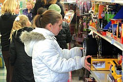 “It’s not about what we want, it’s about what they want,” one student put it as they moved up and down the aisle way overlooking the toy selection.