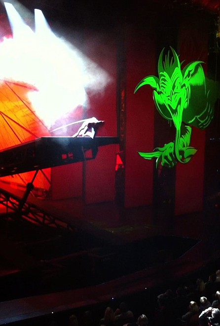 Scott Fisher, president of Fisher Technical Services Inc. of in Las Vegas, which builds equipment for aerial stunts for the show, said the rope was supposed to be clipped to the stage at one end and the performer's back at the other.