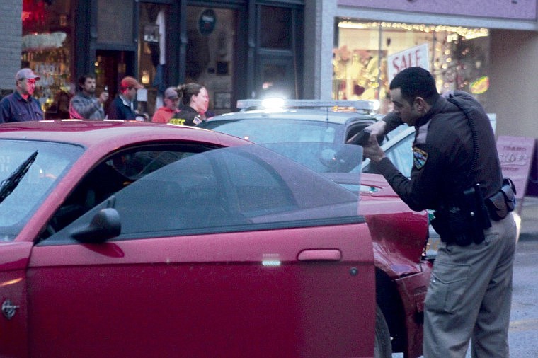 The chase ended when Deputy Dallas Jones, piloting a SCSO Dodge truck, rammed the Mustang on Bank Street, Lindsey said. The sports car struck at least one car parked along the street, and came to a stop outside the Wallace Brewing Company.