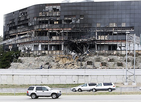 The entire outside of the second floor was gone on the side of the building where the plane hit. Support beams were bent inward. Venetian blinds dangled from blown-out windows, and large sections of the exterior were blackened with soot. It was not immediately clear if any tax records were destroyed.
