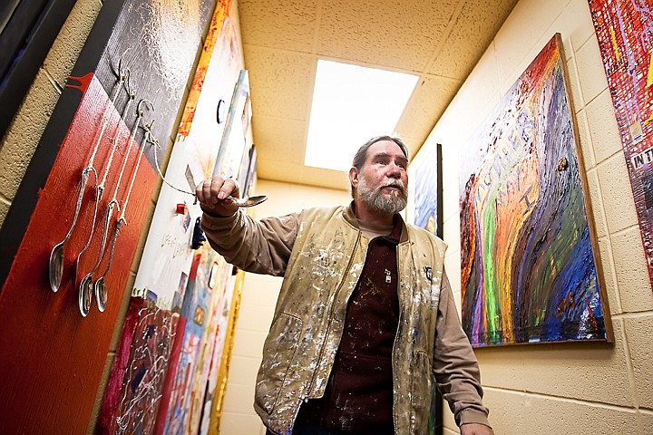COEUR d'ALENE - Hanging on the wall, inside the Steven A. Scroggins Fine Art gallery in downtown Coeur d'Alene, is a painting, one of many. And part of that particular painting is several silver spoons hanging in a row next to each other.