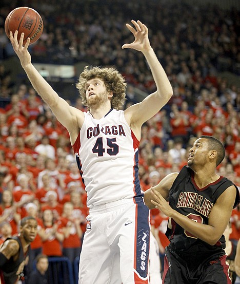 Gonzaga (23-5, 11-2) dominated from the start, limiting Santa Clara to 34 percent shooting and holding them below 30 points for most of the game. The Zags shot 57 percent and dominated the boards 43-28. Bol Kong had 12 points and Robert Sacre 11 for the Zags.