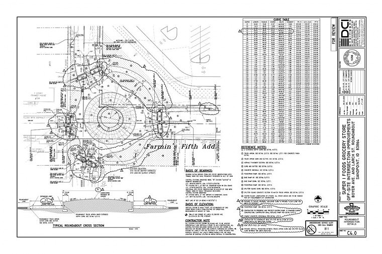 The roundabout was funded by Super 1 Foods, which is building a store at the Boyer and Larch. The roundabout was designed by DCI Engineers in Spokane, Wash.