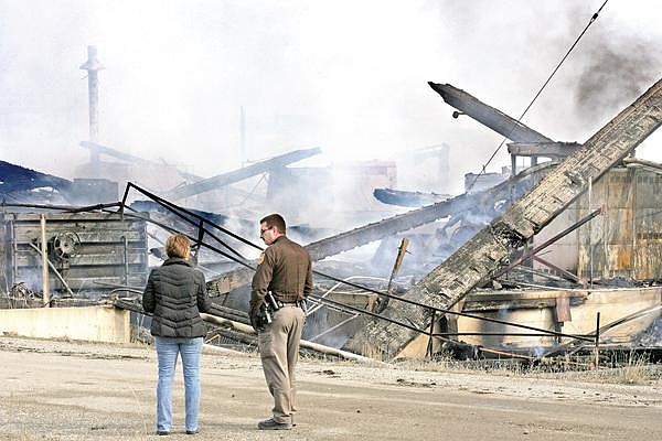 The 4.7-acre building was leveled Thursday night, burning up machinery, tools and business inventory. Though three-fourths of the structure was in the process of being torn down, a 54,000 square foot portion was leased by Revett Minerals to perform a truck-to-rail transfer of silver and copper concentrates from Troy Mine. An adjacent building about 4,000 square feet in size also burned, wiping out specialty business Wedge Wood Products.