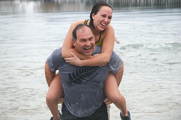 Kayla and Ron Couture emerge from icy Flathead Lake all smiles after taking the annual Polar Plunge on New Year’s Day. Though the event had no official sponsor, about 20 plungers showed up at 1 p.m. to partake in the frigid traditional start to the year. Kayla claimed this was her third plunge in Polson, something she does “so my dad can’t hold anything against me.” Plungers were in and quickly out of the water, with the air temperature hovering around the mid-30s.