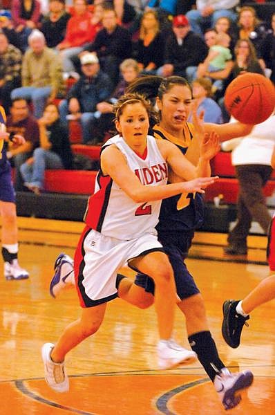 Breanne Kelley got the ball for what seemed to be an easy lay-up, but Ronan sophomore Ashely Grandchamp hustled back to prevent her from scoring.