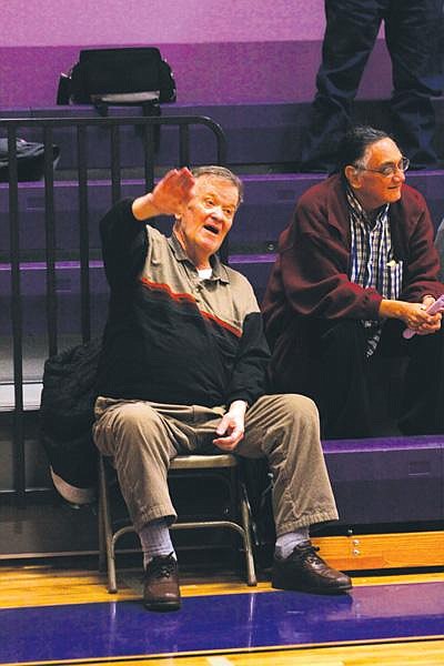 On Saturday, he didn’t quite make it to his usual seat high in the bleachers for the Polson High School basketball games. But he was front and center as Steve Nelson read a tribute to Barry. Boys’ basketball team members Derrick Rathe and Kyle Bagnell then presented him with a “No. 1 fan” plaque and Pirate sweatshirt.