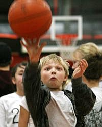 Dozens of basketballs bounced across the gym floor as children ten deep stood in line on both sides of the Plains High School basketball court waiting to shoot free throws and half court shots.