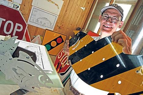 To add color and make the design rust proof, Boren opted to recycle highway signs for his fish — all trout.