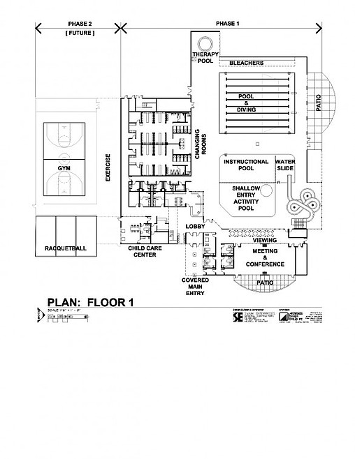 Designed by a team of professionals, this top-of-the line facility will include an eight lane, 25-yard pool for lap swimming and competition. This pool will meet the specifications for high school state swim meets and will serve as a sports and fitness resource for members. A shallow entry activity pool, which will be the place for fun and fitness at the center will be a zero-entry pool gradually leading to a maximum depth of 4 1/2 feet. This warmer pool is designed for swim instruction and water aerobics and will be equipped with a slide and spray features.