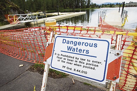 Because of the open spill gates, it is not safe to be in the water above the dam and a Post Falls city ordinance prevents river use in that area during such times.