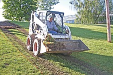 Irrigation line layouts were spray painted across the grass and city workers dug up piping. A Bobcat loader quickly made a dirt swath down to the park.