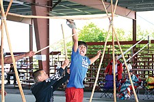 Thursday started out with the Scalp Dance, which traditionally called all women to the chief's camp to have their faces painted and start the dancing. Later, the group performed the songs for war dancing, the coffee dance and the smoking song. These exhibition dances were open to all and allowed everyone to get involved.