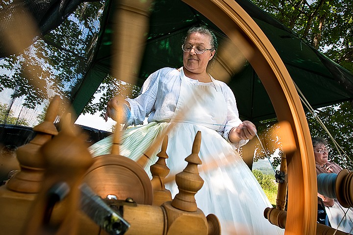 Charlotte Magone of Libby, Mont., and Sabrina Murphy of Post Falls were there showing people how to spin wool into yarn using spinning wheels and drop spindles.