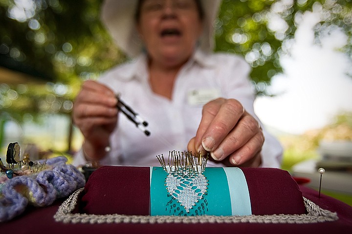 Joy Irving, of Moscow, was making bobbin lace on a roller pillow.