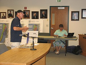 EPHRATA — Crescent Bar Resorts owner Tom Park asked Grant County PUD commissioners Monday to keep his business and others in mind during changes at Crescent Bar Island. Park was referring to the recreation additions and the end of private residential use for about 400 leaseholders. Some of the changes begin in 2012, when the lease between Grant PUD and the Port of Quincy ends. The lease allows residential use on the island. Park’s business is located off the island. He rents homes on Sunserra, which is not owned the PUD, and also provides Jet Skis. He was speaking about off-island businesses, but also agreed the area needs on-island stores, like a swimsuit shop. “There is a lot going on at Crescent Bar and we’re starting to get momentum up,” he said. “Don’t cut us off at the knees.” Park added they are barely making it during the summer months and asked the PUD to make easy for the vendors during the transition. If the island is closed, then “we’ll have nothing,” he said. “We have to have an inner structure. If we cut out everything, we’ll have nothing. I want to see that transition happen slow, but sure.” He explained the area even has its own newspaper, the Crescent Bar Chronicle, which he brought a stack of for commissioners. He also left some tourism books at the meeting. Commissioner Randy Allred agreed there should be a concessionaire in the process.
