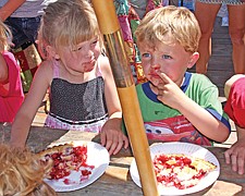Leyton and Katelyn Hankins, of Polson, are quite shocked to find that the pie has ended up on their face during the kids' pie-eating contest at the Cherry Festival last weekend in Polson.