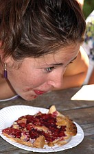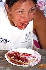 17-year-old Marlee Berry, of Polson, looks at her opponents' progress during the adult pie-eating contest at the CherryFestival last weekend in Polson.