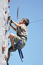 Linde Lambson, of Polson, climbs up the rock wall during the Cherry Festival last weekend in Polson.