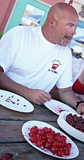 Kyle Saxton, of Big Fork, ties a cherry stem with his tongue during the Cherry Festival last Friday in Polson.