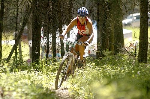 Clint Muhlfeld led wire-to-wire and edged Geoff Clark by two minutes in the third annual Granja del Cerdo mountain bike race July 17 at the Pig Farms trail system. Muhlfeld rides for the Sportsman Ski Haus cycling team.