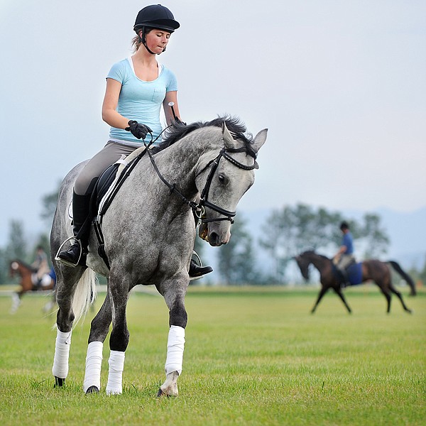 Sarah Clancy, 15, of Fox Island, Wash., practices with her thoroughbred Piko on Thursday at The Event at Rebecca Farm. The equestrian competition continues through Sunday.